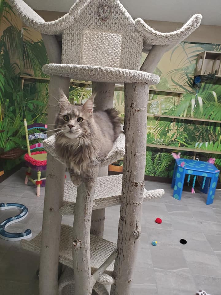 We keep every cat separate, unless from the same family, so that there are no spats between cats. They enjoy seeing each other though! Everything is sanitized between cats to keep them safe from germs and healthy while here. We also use an Ozoneator to kill any germs that might be floating in the air.